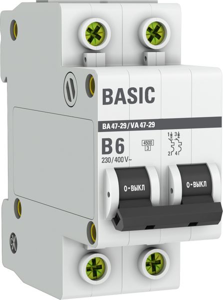 Автоматический выключатель 2P 6А (B) 4,5кА ВА 47-29 Basic