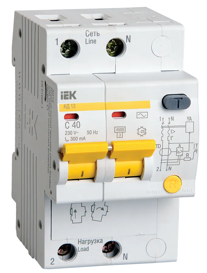 Полные технические характеристики Выключатель автоматический дифференциальный (АВДТ) АД-12 2п 40А 300мА С(Электронный) IEK (ИЭК) MAD10-2-040-C-300