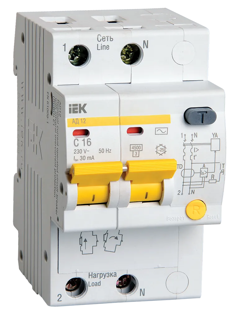 Выключатель автоматический дифференциальный АД12 2Р B16 30мА IEK (ИЭК) MAD10-2-016-B-030