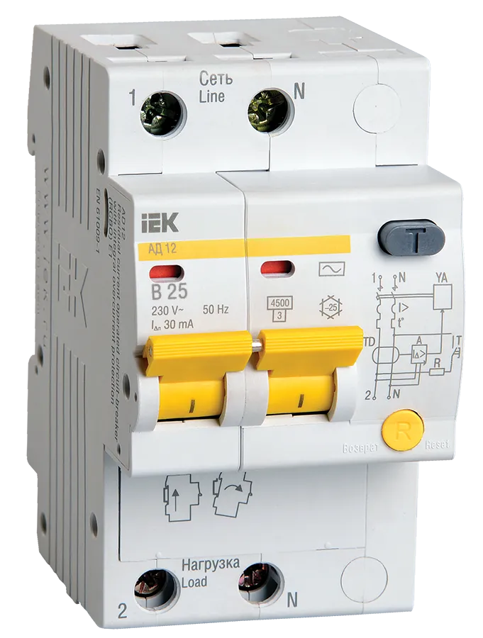 Выключатель автоматический дифференциальный АД12 2Р B25 30мА IEK (ИЭК) MAD10-2-025-B-030