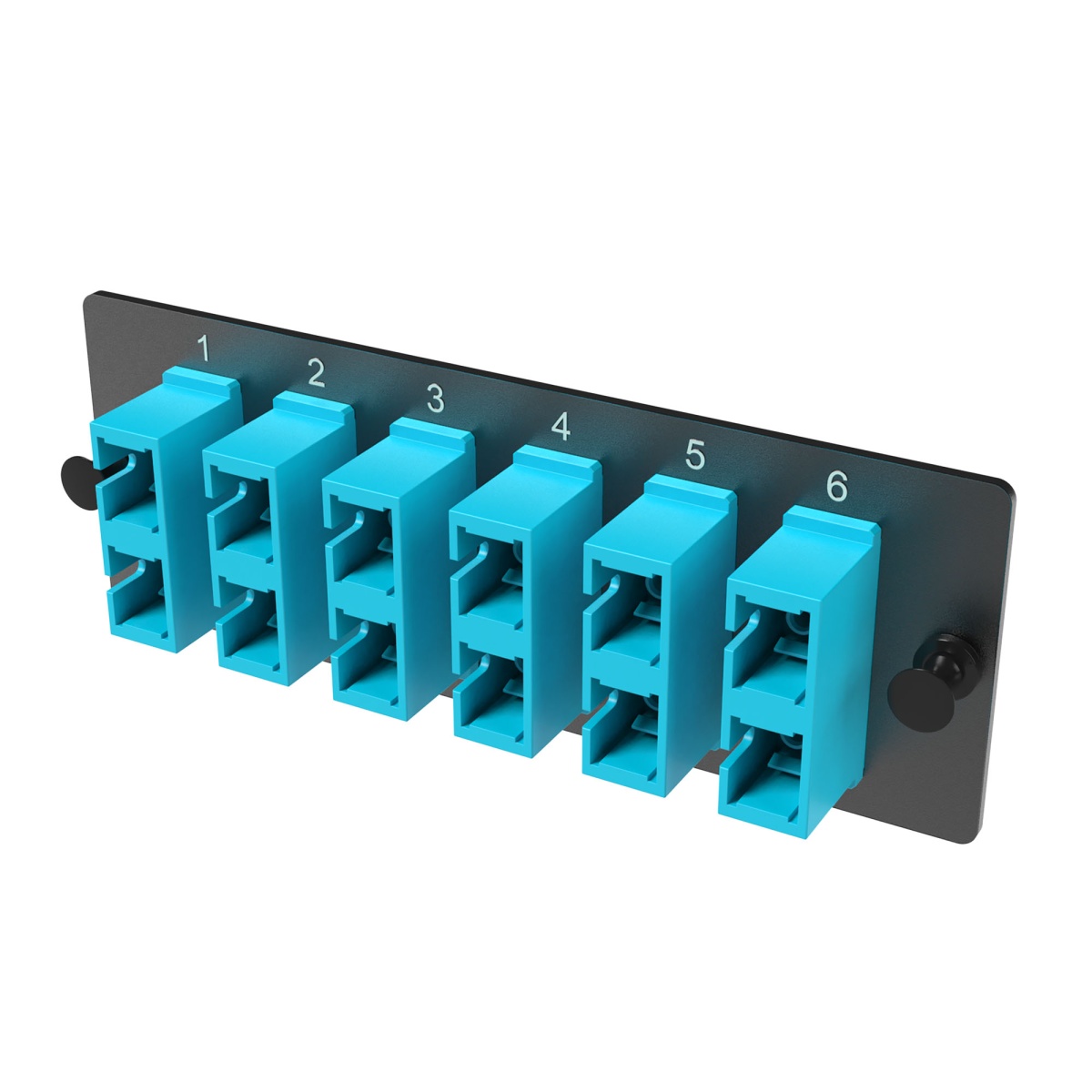 Адаптерная планка с установленными 6xSC Duplex адаптерами (цвет адаптера - бирюзовый)  OM3, 1 HU
