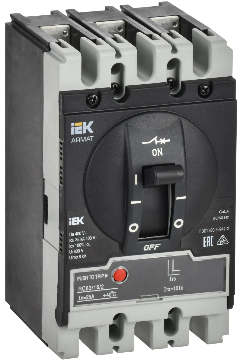 Полные технические характеристики ARMAT Автоматический выключатель в литом корпусе 3P типоразмер S 35кА 16А расцепитель электромагнитный регулируемый IEK (ИЭК) AR-MCCB-3S-035-0016A-MTUC