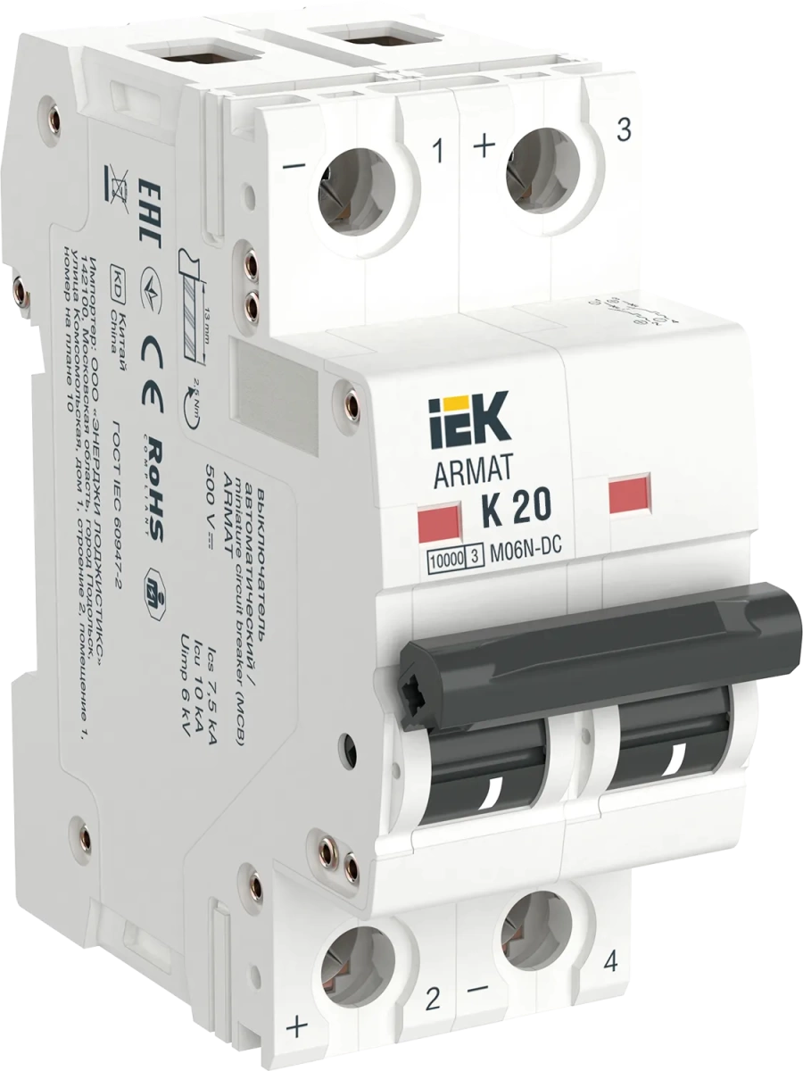 ARMAT Автоматический выключатель M06N-DC 2P K 20А IEK (ИЭК) AR-M06N-2-K020DC