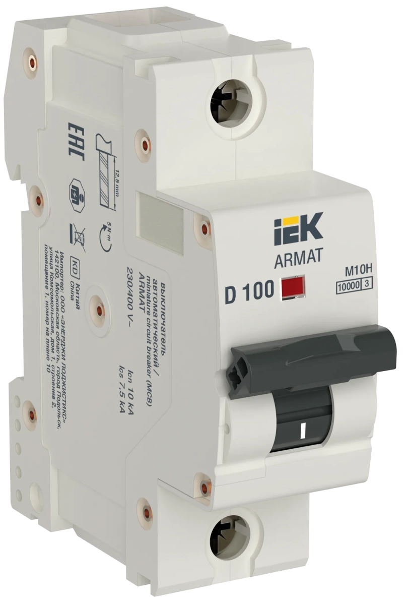 Наименование в каталоге ARMAT Автоматический выключатель M10H 1P D 100A IEK