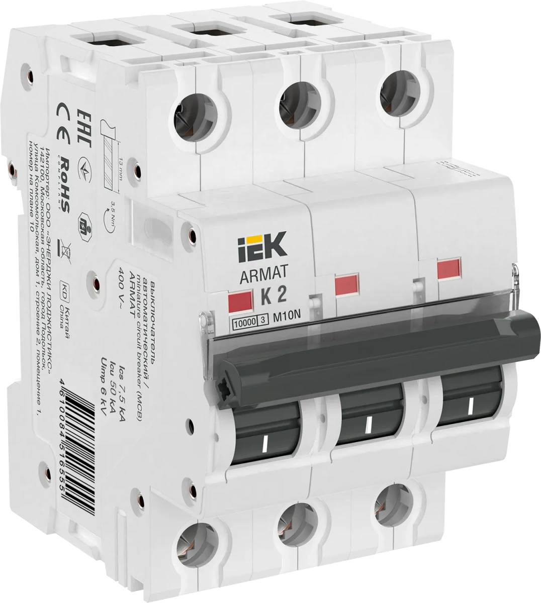ARMAT Выключатель автоматический трехполюсный M10N K 2А IEK (ИЭК) AR-M10N-3-K002