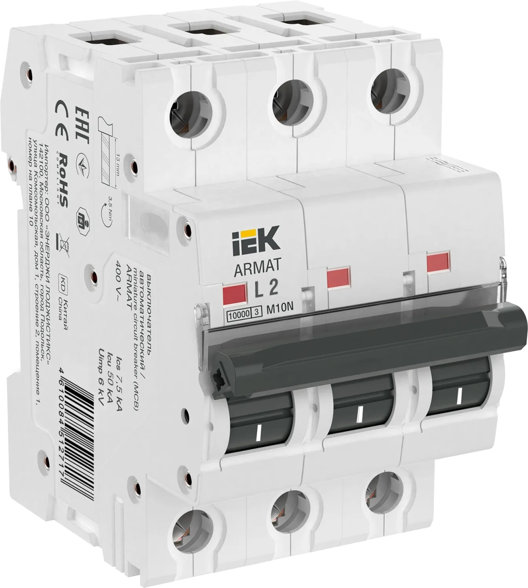 ARMAT Выключатель автоматический трехполюсный M10N L 2А IEK (ИЭК) AR-M10N-3-L002