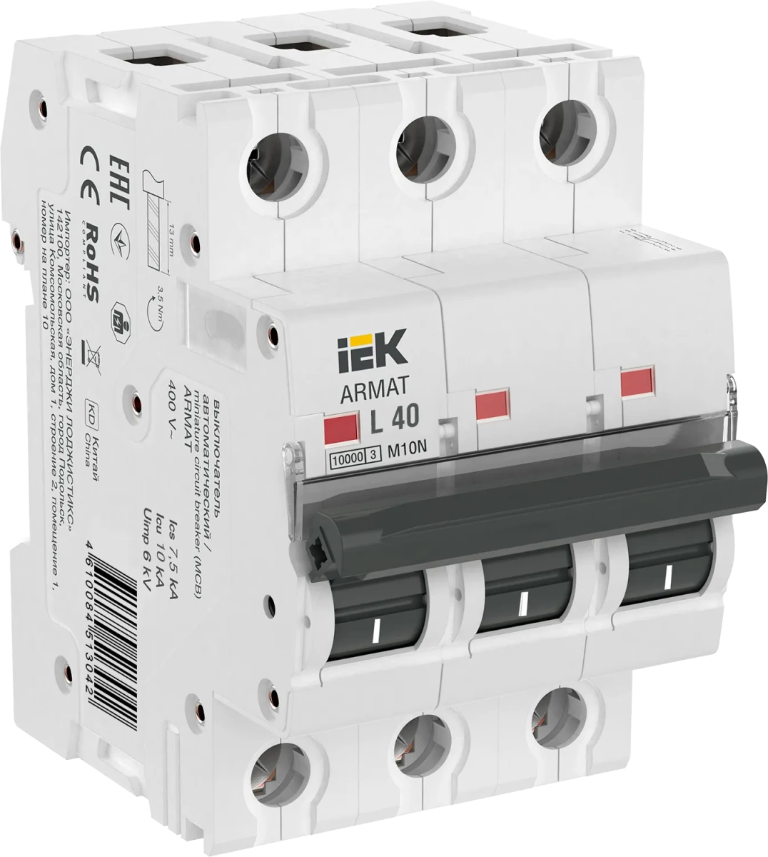 ARMAT Выключатель автоматический трехполюсный M10N L 40А IEK (ИЭК) AR-M10N-3-L040