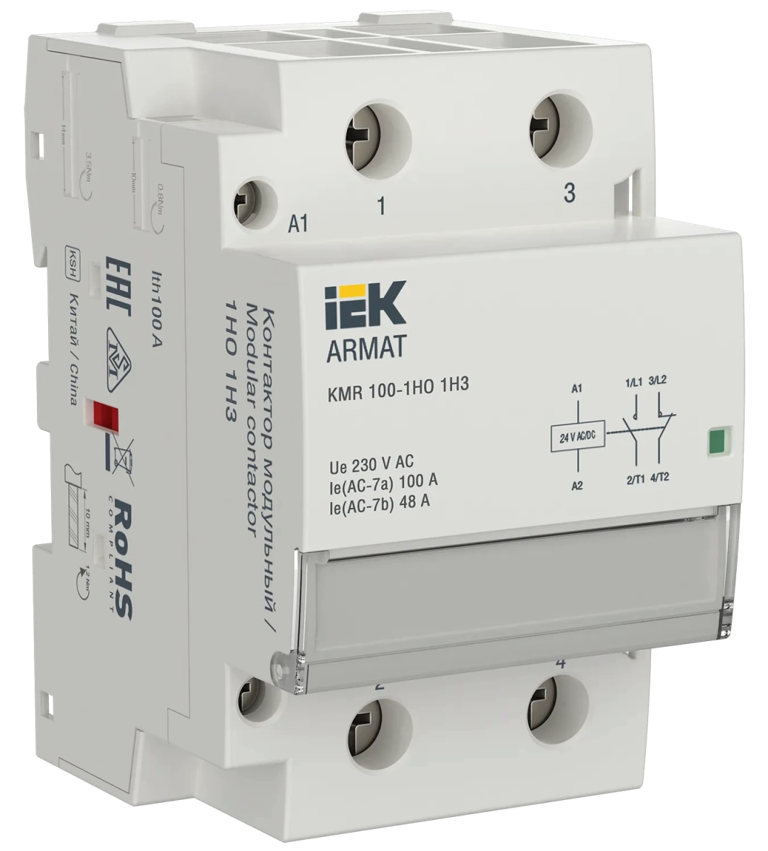 Наименование в каталоге ARMAT Контактор модульный KMR 100А 24В AC/DC 1НО 1НЗ IEK