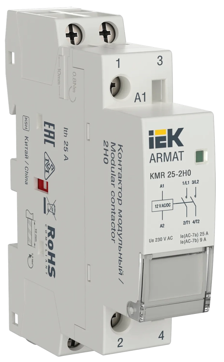 Наименование в каталоге ARMAT Контактор модульный KMR 25А 12В AC/DC 2НО IEK