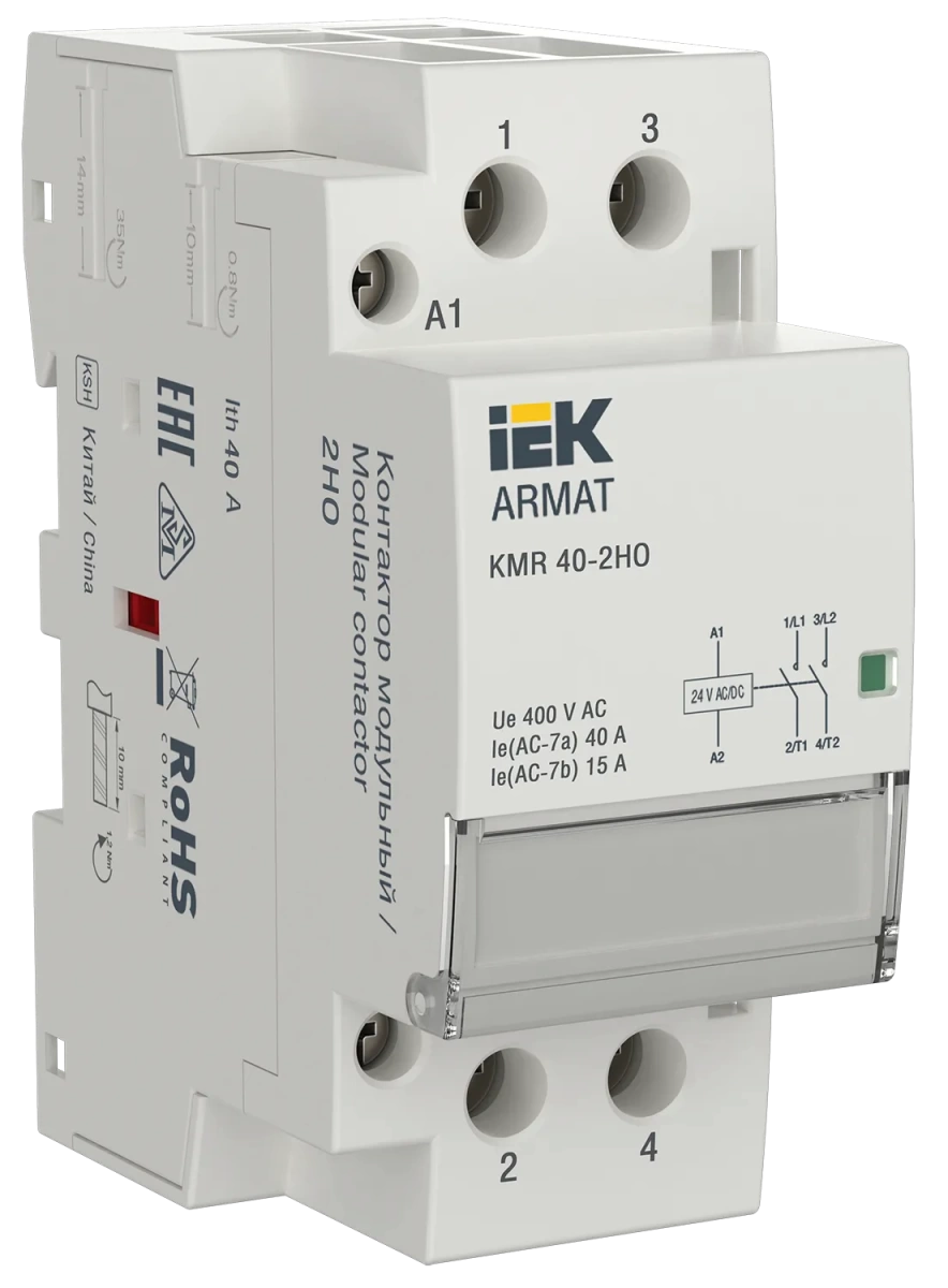 Наименование в каталоге ARMAT Контактор модульный KMR 40А 24В AC/DC 2НО IEK