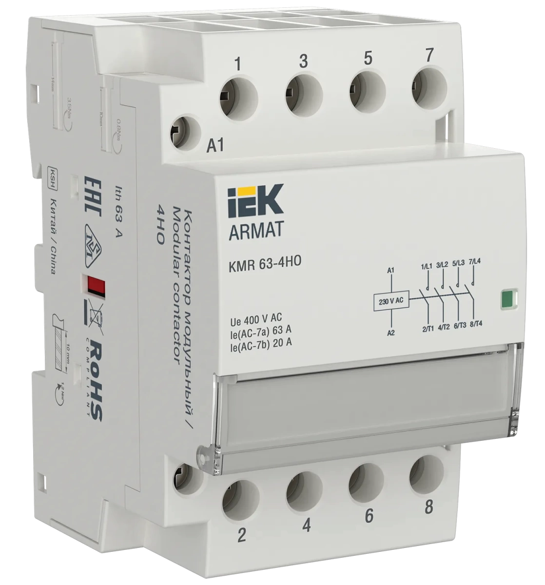 Наименование в каталоге ARMAT Контактор модульный KMR 63А 230В AC 4НО IEK
