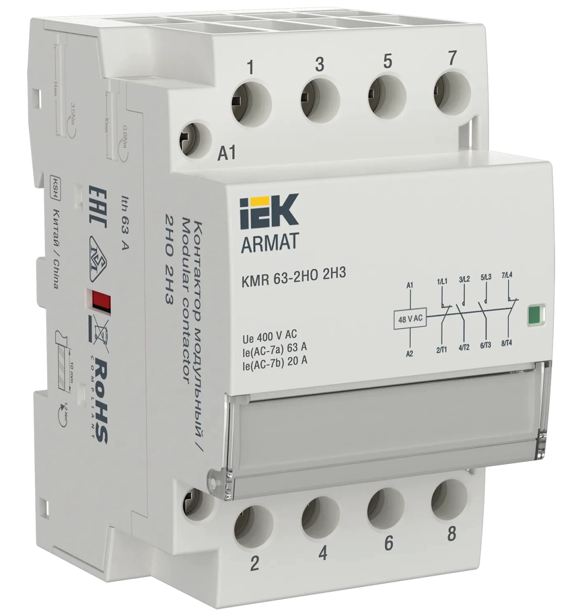 Наименование в каталоге ARMAT Контактор модульный KMR 63А 48В AC 2НО 2НЗ IEK