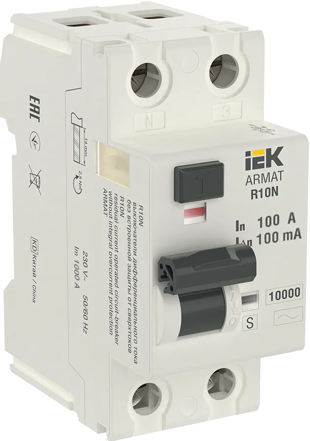 ARMAT Выключатель дифференциального тока R10N (УЗО) 2п 100А 100мА тип AC-S IEK (ИЭК) AR-R10N-2-100CS100