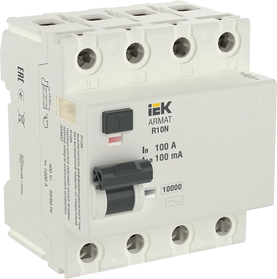 ARMAT Выключатель дифференциального тока R10N (УЗО) 4п 100А 100мА тип AC IEK (ИЭК) AR-R10N-4-100C100