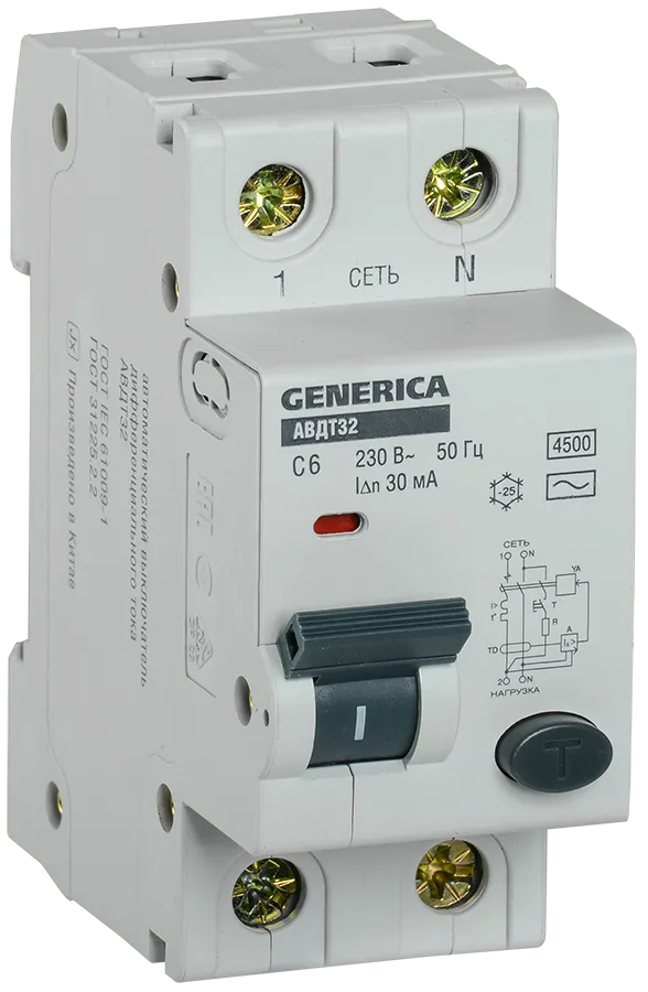 Наименование в каталоге АВДТ 32 C6 - Автоматический Выключатель Дифф. ТокаGENERICA