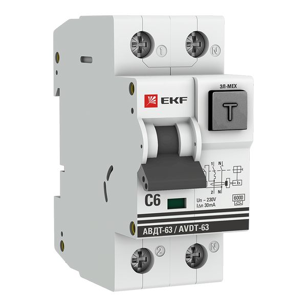 Дифференциальный автомат АВДТ-63 6А/30мА (характеристика C, эл-мех, тип А) 6кА EKF PROxima