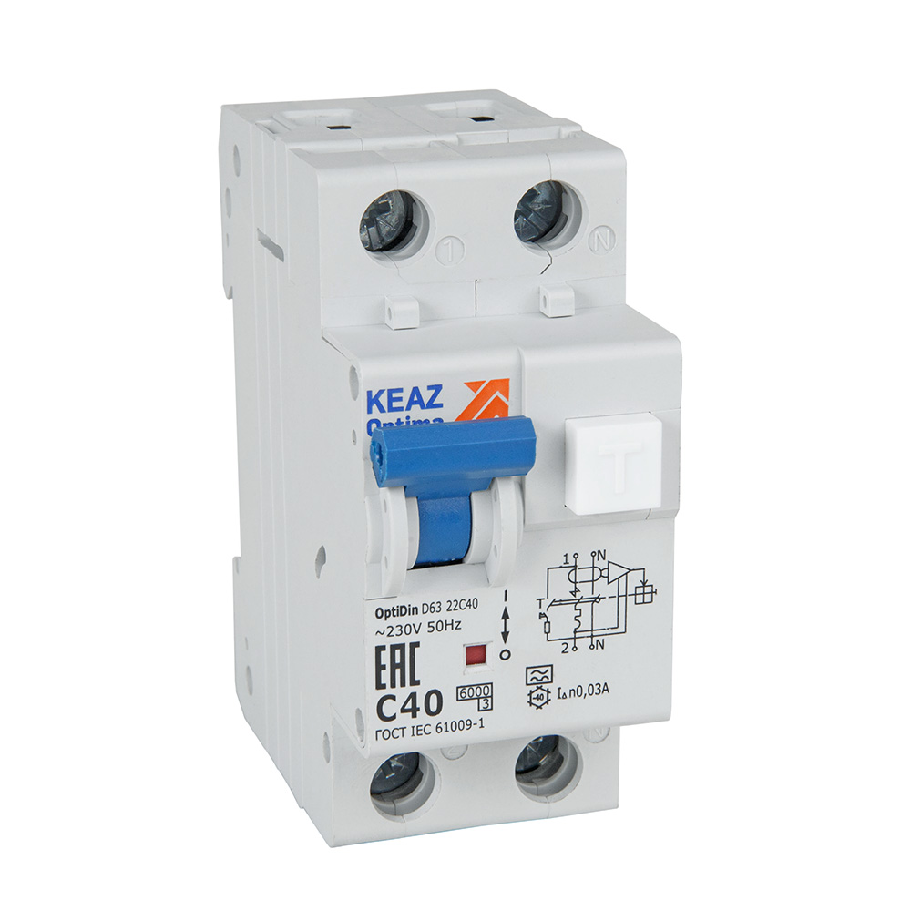Выключатель автоматический дифференциального тока АВДТ 2П 20А 300мА A OptiDin D63-24C20-A-У3 6кА КЭАЗ 333157