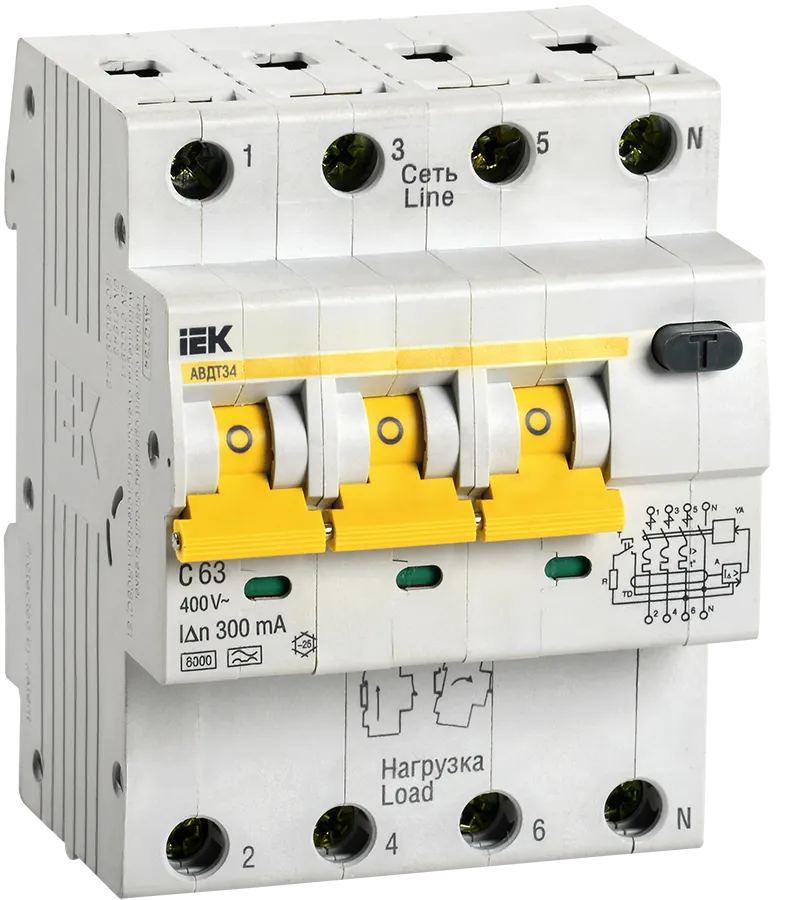 Наименование в каталоге Выключатель автоматический дифференциальный АВДТ 34 C63 300мА(Электронный)