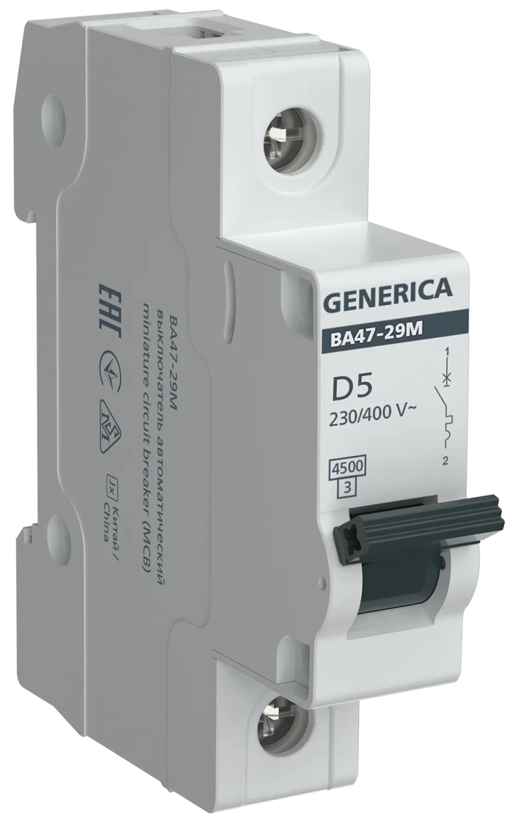 Автоматический выключатель ВА47-29М 1P 5А 4,5кА D GENERICA IEK (ИЭК) MVA21-1-005-D-G