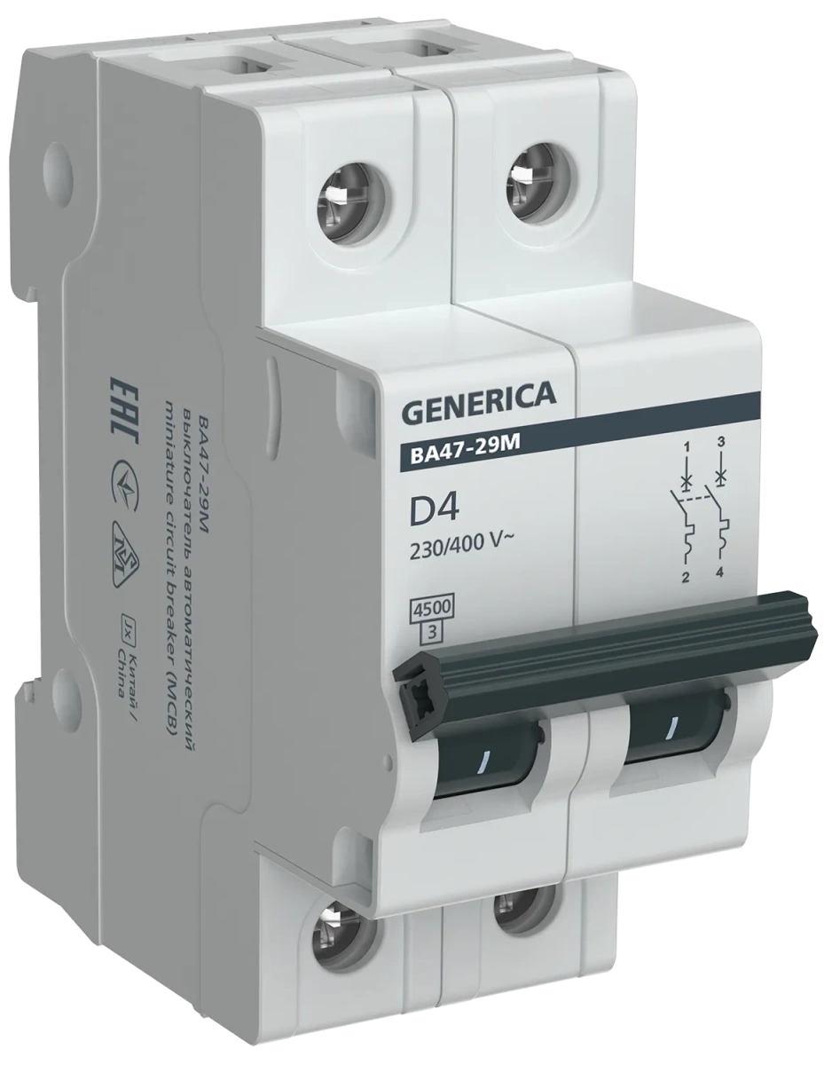 Автоматический выключатель ВА47-29М 2P 4А 4,5кА D GENERICA IEK (ИЭК) MVA21-2-004-D-G