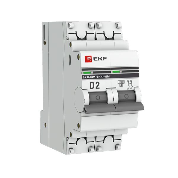 Автоматический выключатель 2P 2А (D) 6кА ВА 47-63M c одним магнитным расцепителем EKF mcb4763m-6-2-2D-pro