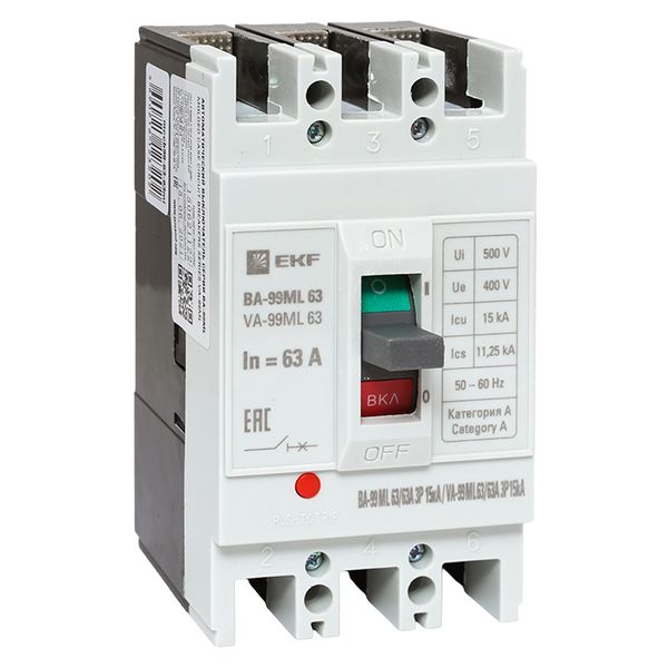 Полные технические характеристики Автоматический выключатель ВА-99М 63/63А 3P 15кА Basic EKF mccb99-63-63mi