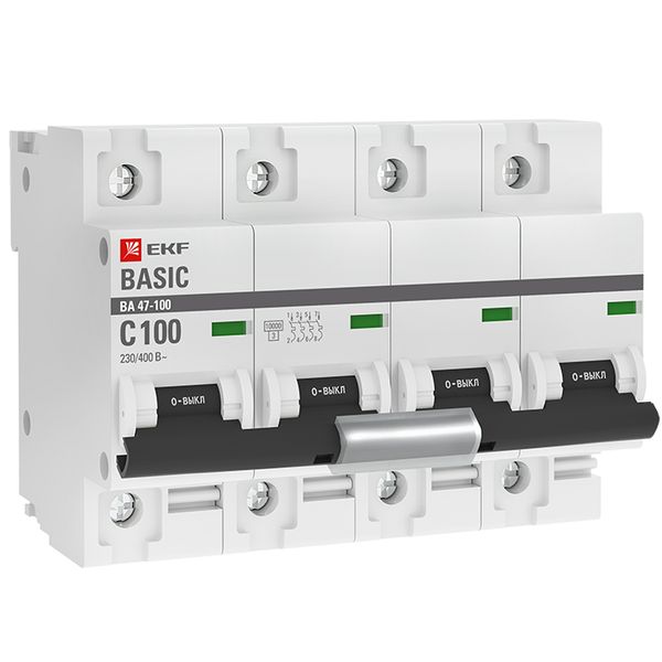 Автоматический выключатель 4P 100А (C) 10kA ВА 47-100 Basic EKF mcb47100-4-100C-bas
