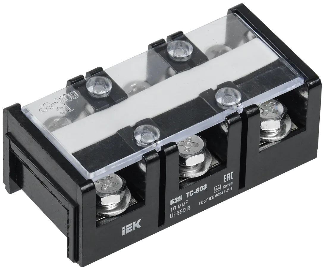Описание Используются для безопасного и компактного присоединения и ответвления проводников различного сечения из меди и алюминия в цепях переменного тока напряжением до 660В и постоянного тока напряжением до 440В.Устанавливаются на монтажную панель. Для изоляции проводников устанавливается прозрачная крышка.Корпус выполнен из не поддерживающего горение карболита. Токоведущая шина изготовлена из латуни.