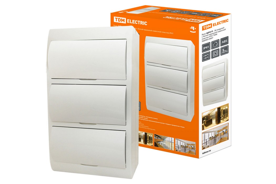 Бокс ЩРН-П-36 модулей с белой крышкой навесной пластик IP40 TDM ELECTRIC SQ0903-0007