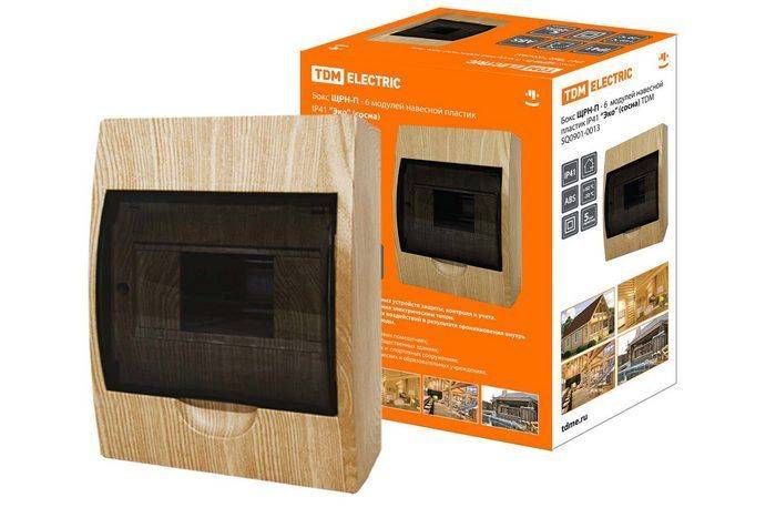 Бокс ЩРН-П-6 модулей навесной пластик IP41 "Эко" (сосна) TDM
