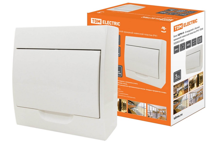 Полные технические характеристики Бокс ЩРН-П-8модулей с белой крышкой навесной пластик IP40 TDM ELECTRIC SQ0903-0003