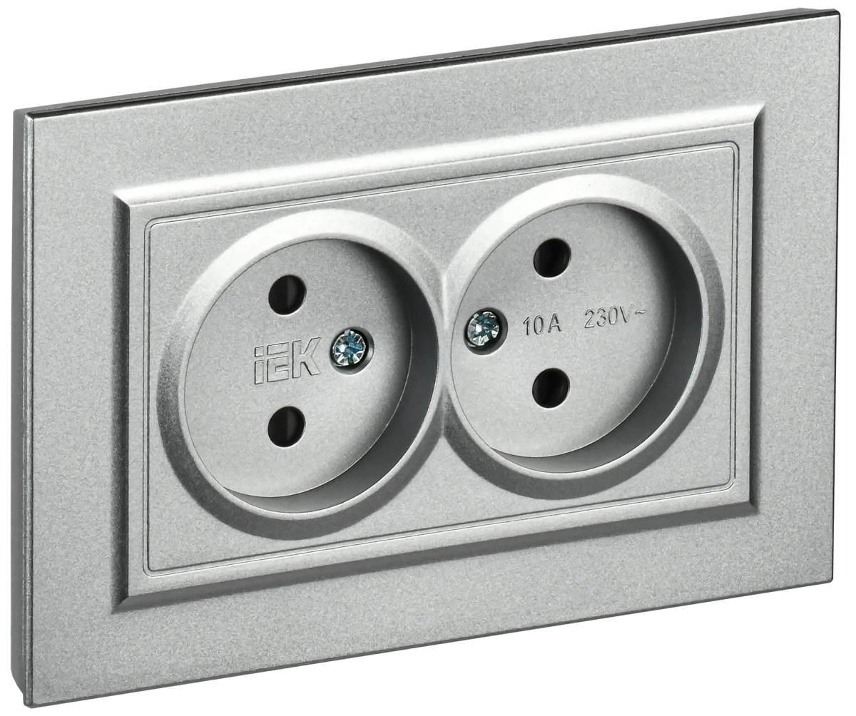 BRITE Розетка 2-местная без заземления с защитными шторками 10А в сборе РСш12-2-БрА алюминий IEK IEK (ИЭК) BR-R23-10-K47-F