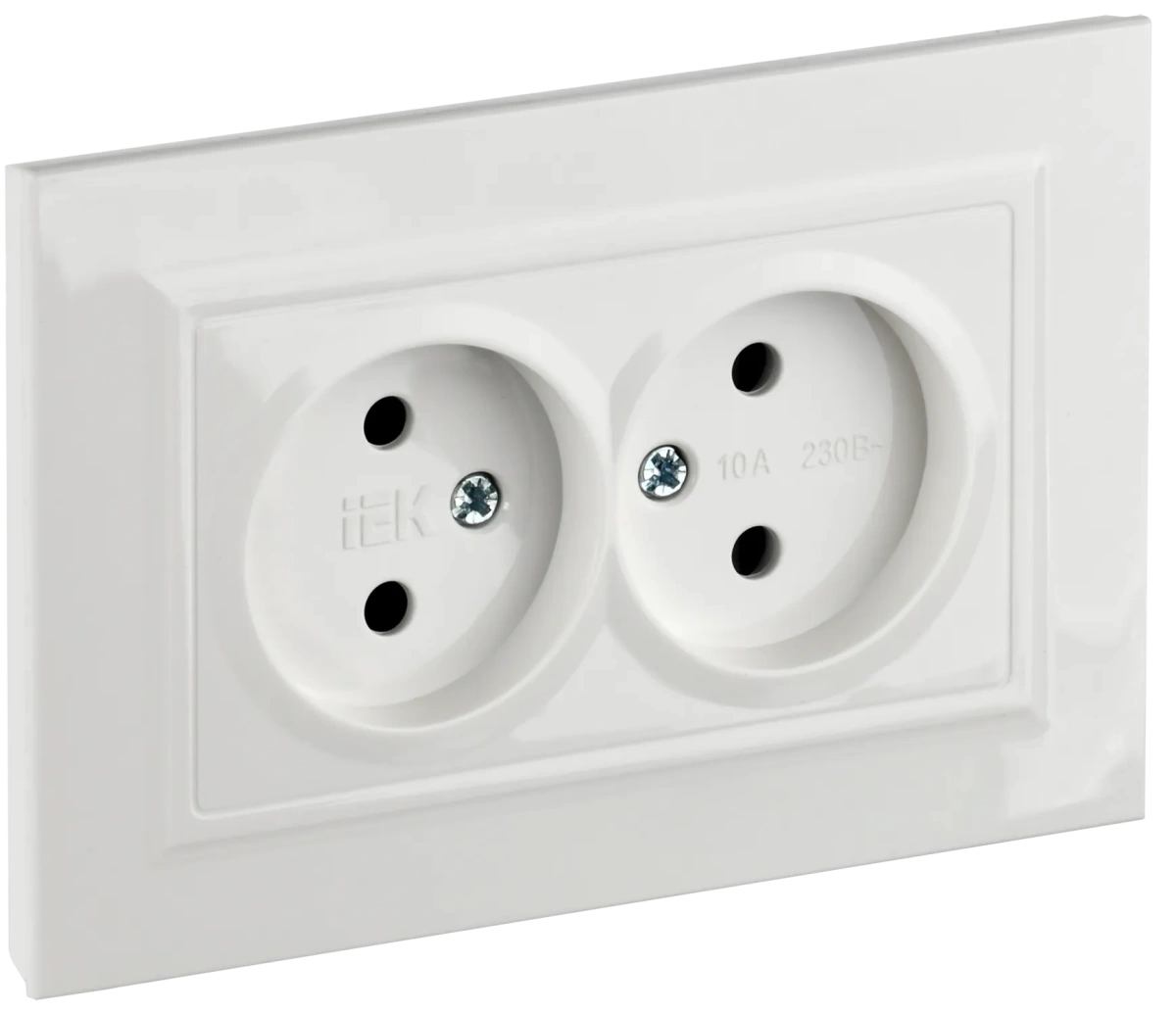 BRITE Розетка 2-местная без заземления с защитными шторками 10А в сборе РСш12-2-БрБ белый IEK IEK (ИЭК) BR-R23-10-K01-F