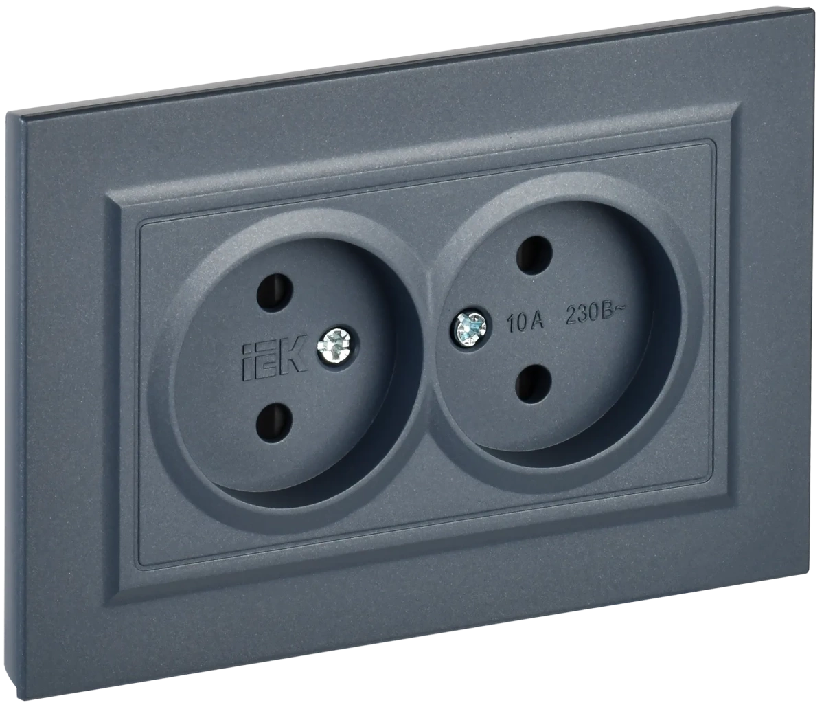 Наименование в каталоге BRITE Розетка 2-местная без заземления с защитными шторками 10А в сборе РСш12-2-БрМ маренго IEK