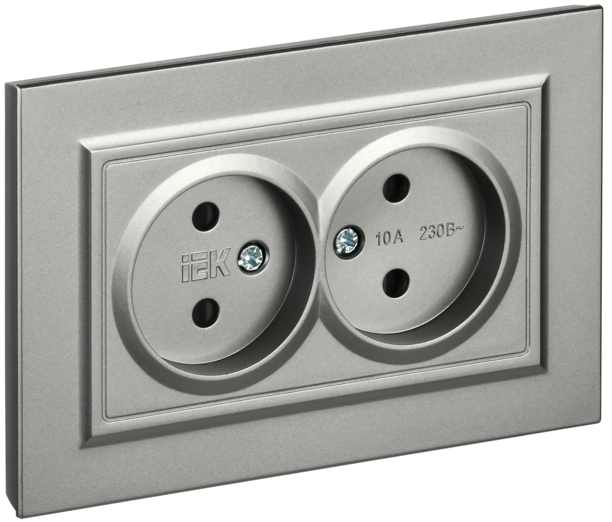 BRITE Розетка 2-местная без заземления с защитными шторками 10А в сборе РСш12-2-БрС сталь IEK IEK (ИЭК) BR-R23-10-K46-F