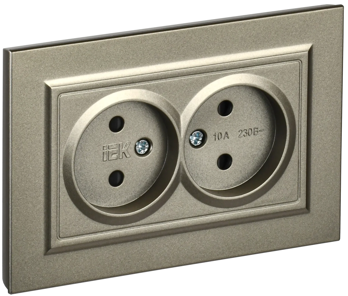 Наименование в каталоге BRITE Розетка 2-местная без заземления с защитными шторками 10А в сборе РСш12-2-БрШ шампань IEK