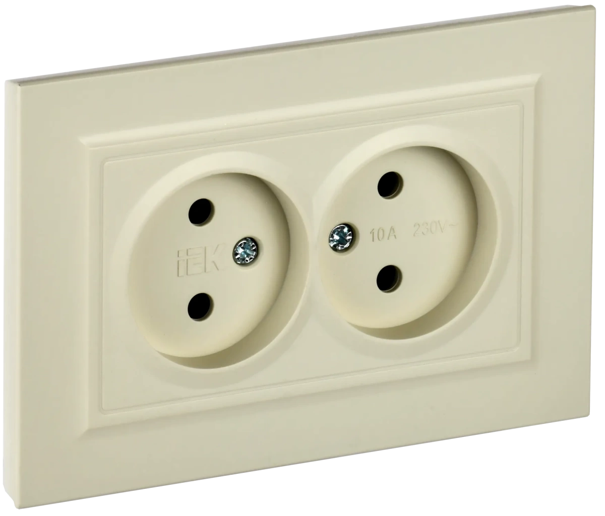 Наименование в каталоге BRITE Розетка 2-местная без заземления без защитных шторок 10А в сборе РС12-2-БрКр бежевый IEK