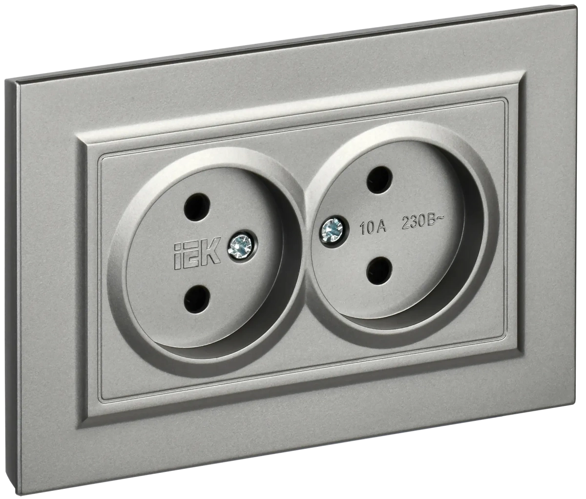 BRITE Розетка 2-местная без заземления без защитных шторок 10А в сборе РС12-2-БрС сталь IEK IEK (ИЭК) BR-R20-10-K46-F