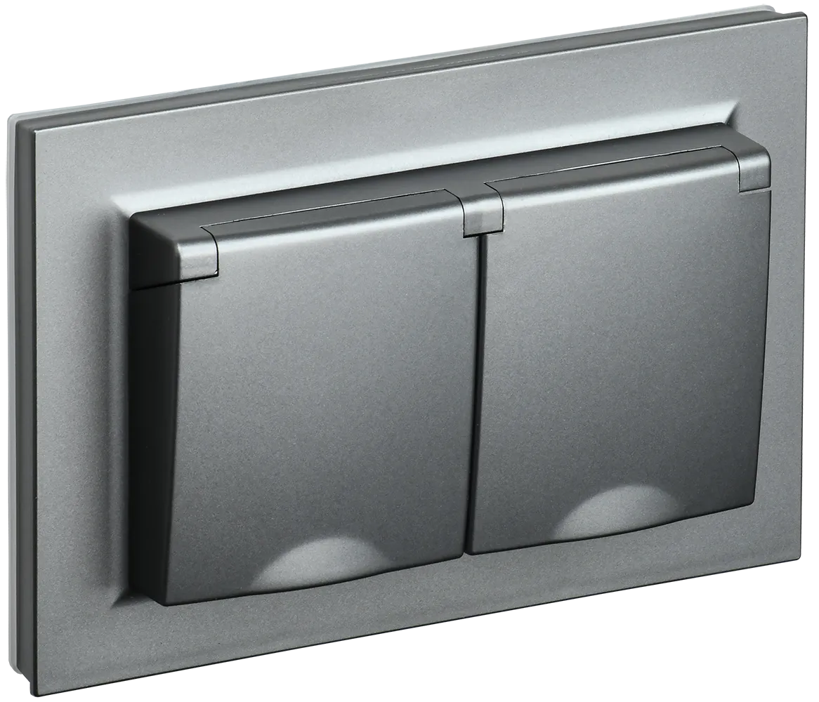 Наименование в каталоге BRITE Розетка двойная с заземлением с защитными шторками и крышкой 16А в сборе IP44 РСбш12-3-44-БрС сталь