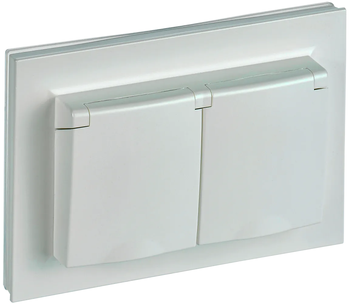 Наименование в каталоге BRITE Розетка двойная с заземлением с защитными шторками и крышкой 16А в сборе IP44 РСбш12-3-44-БрЖ жемчуг