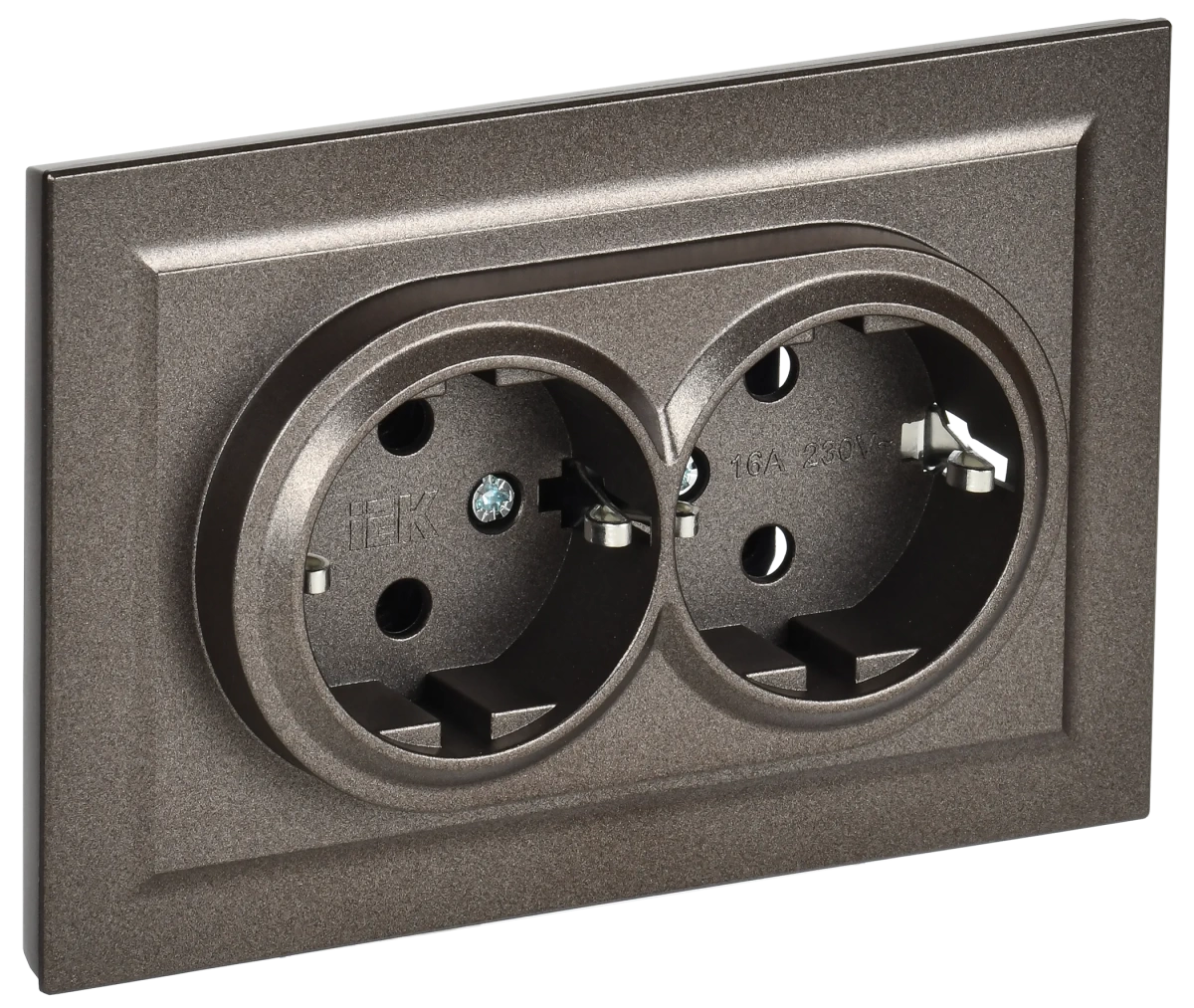 BRITE Розетка двойная с заземлением без защитных шторок 16А в сборе РС12-3-БрТБ темная бронза IEK (ИЭК) BR-R21-16-K45-F