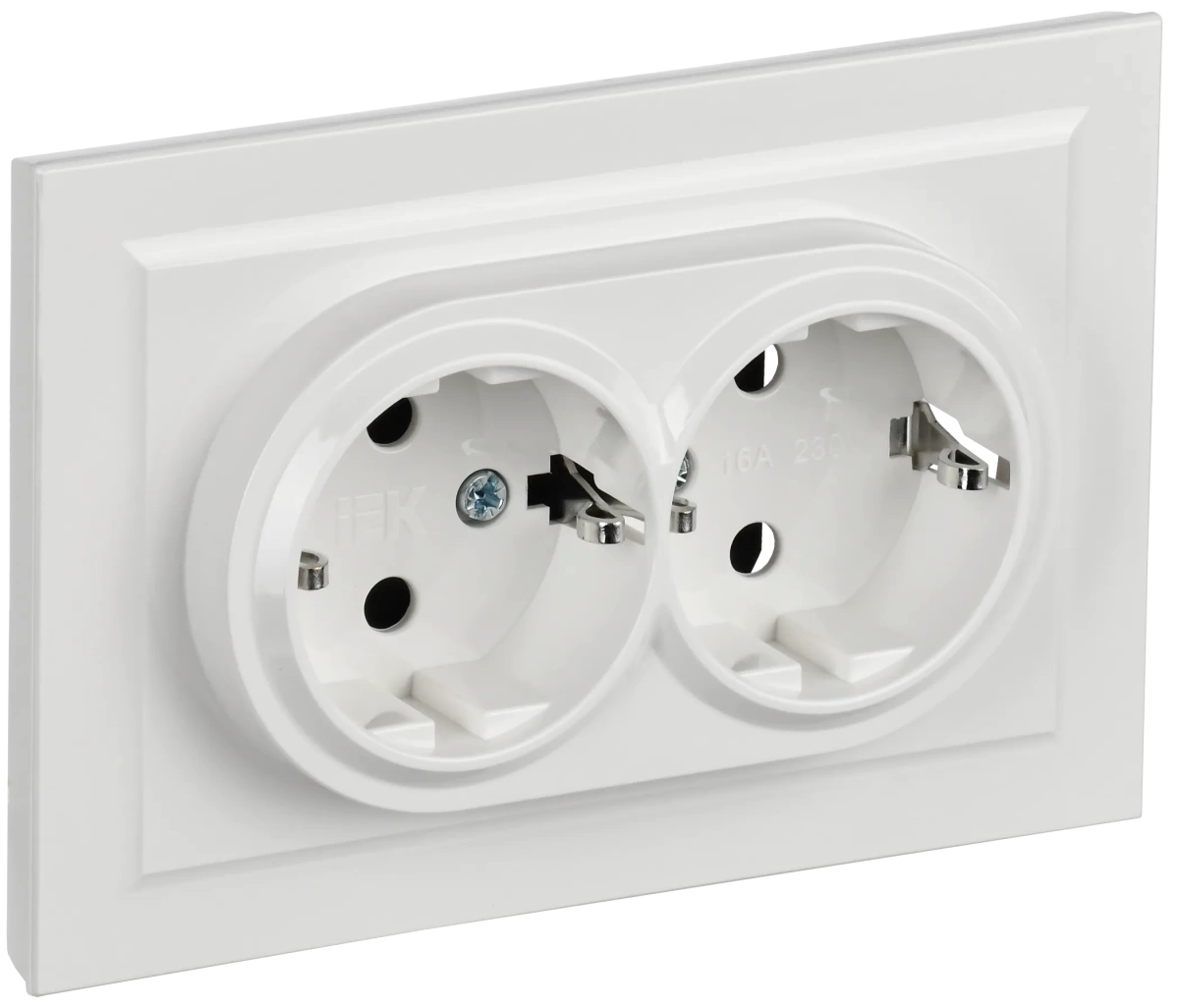 BRITE Розетка 2-местная с заземлением с защитными шторками 16А в сборе РСш12-3-БрБ белый IEK (ИЭК) BR-R24-16-K01-F-PRO