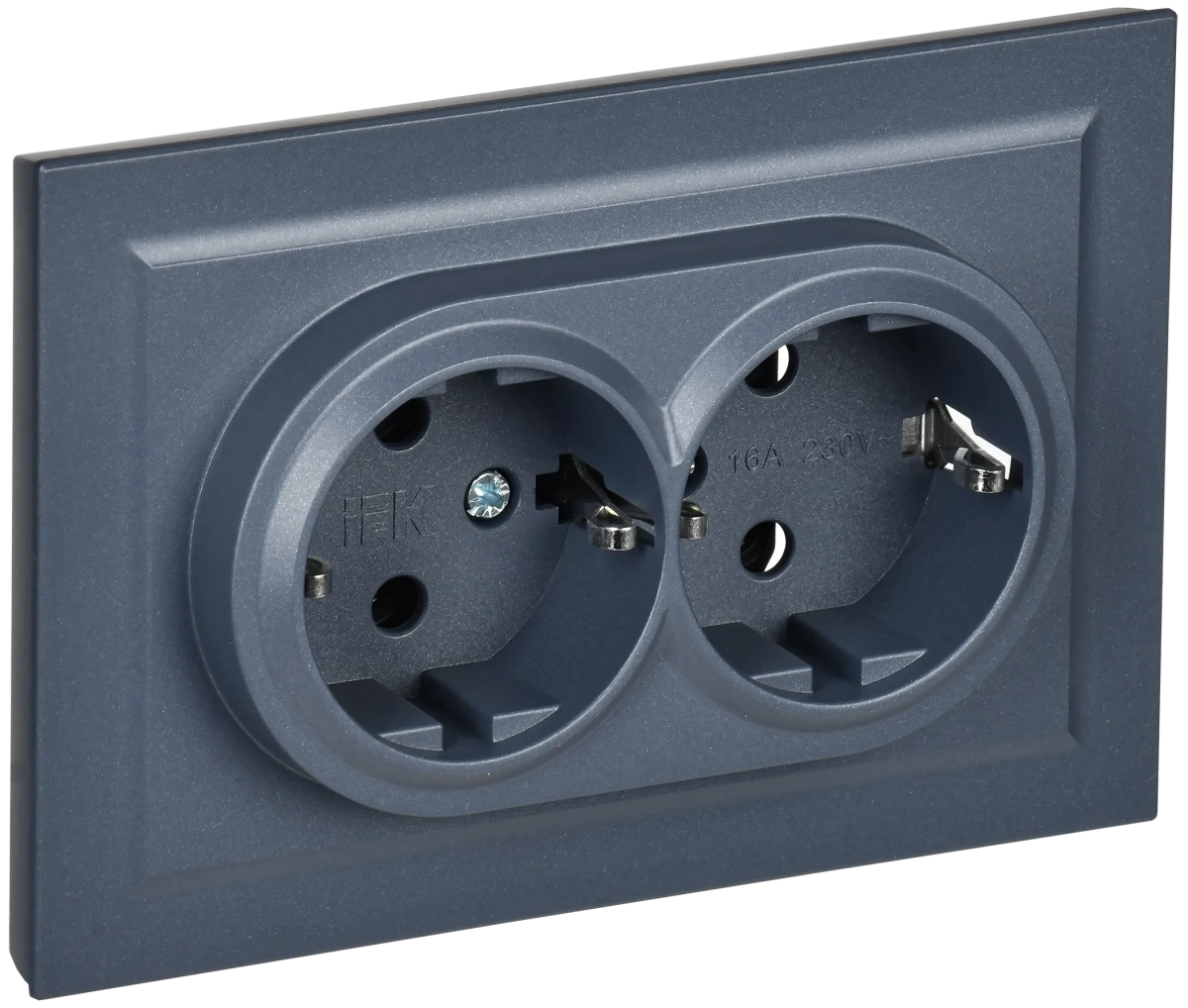 Полные технические характеристики BRITE Розетка двойная с заземлением с защитными шторками 16А в сборе РСш12-3-БрМ маренго IEK (ИЭК) BR-R24-16-K35-F