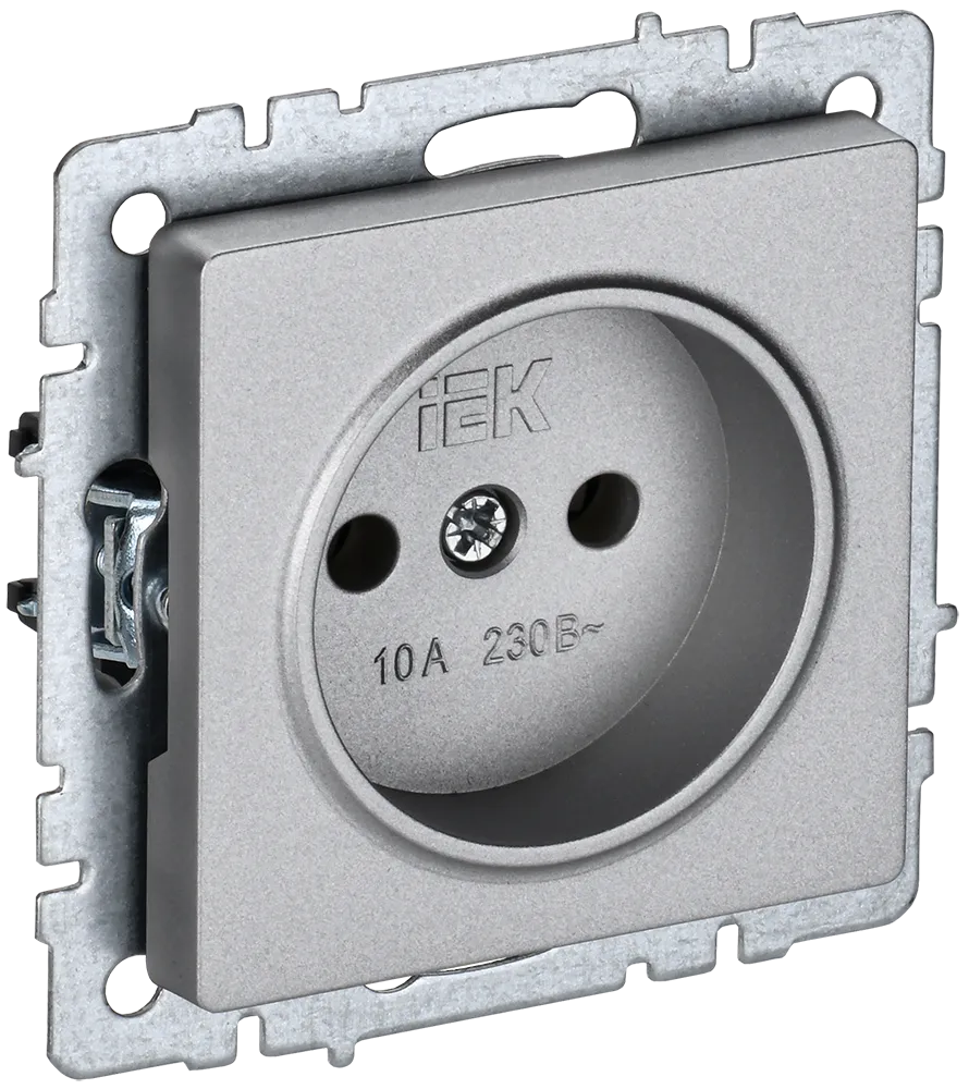 BRITE Розетка без заземления без защитных шторок 10А РС10-1-0-БрА алюминий IEK (ИЭК) BR-R10-10-K47