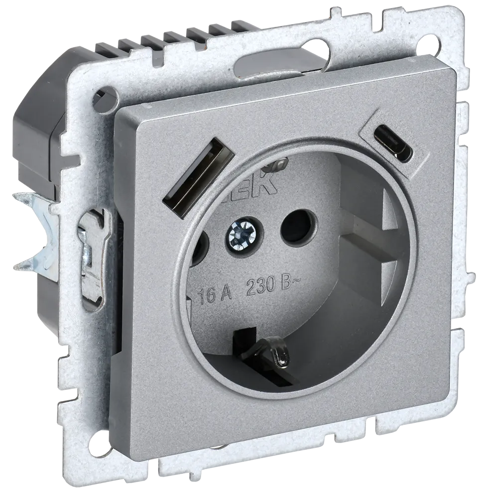 BRITE Роз. с з/к/ш 16А с USB A+C 18Вт РЮш11-1-БрА алюм. IEK