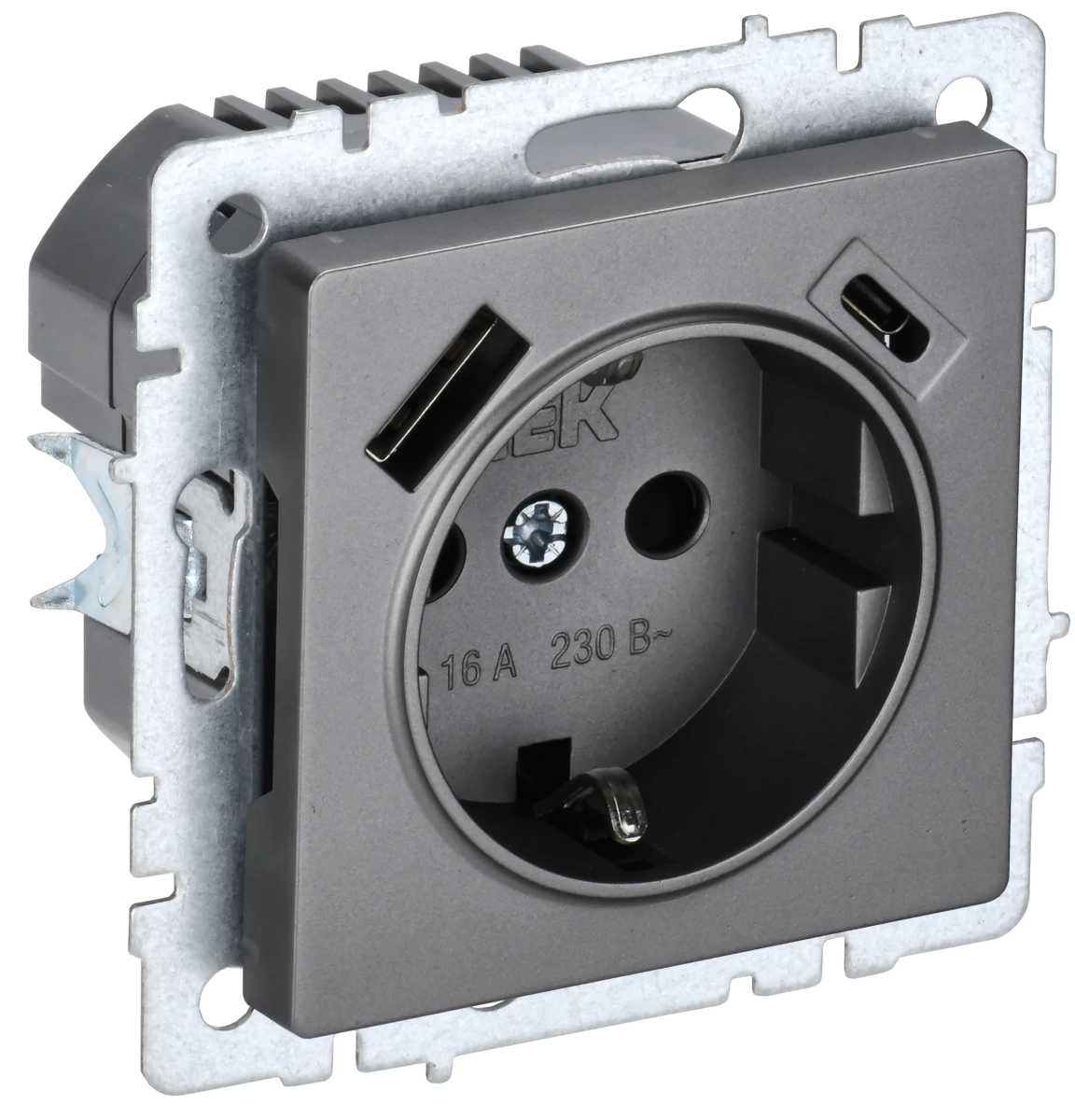 BRITE Роз. с з/к/ш 16А с USB A+C 18Вт РЮш11-1-БрС сталь IEK