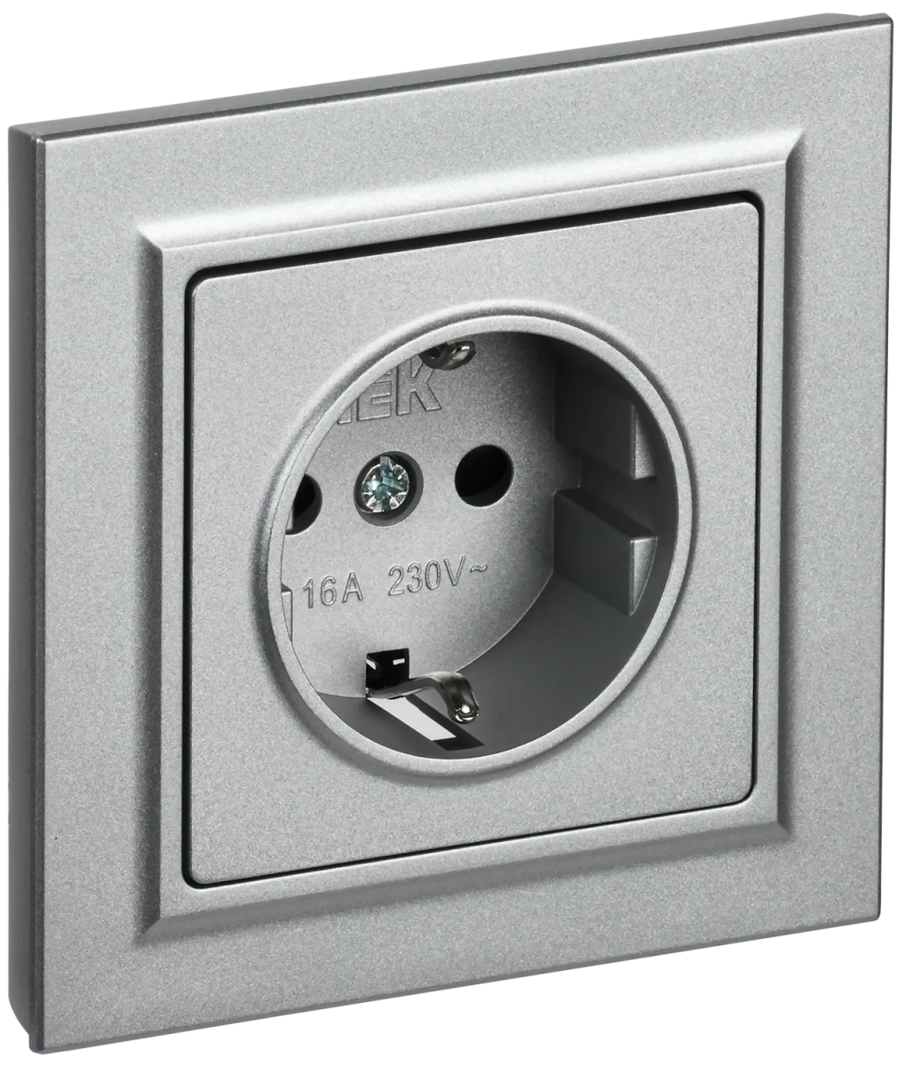 Наименование в каталоге BRITE Розетка 1 пост с заземлением с защитными шторками 16А в сборе РСР14-1-0-БрА алюминий IEK