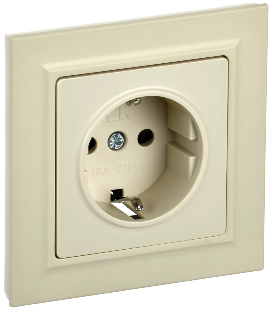 Наименование в каталоге BRITE Розетка 1 пост с заземлением с защитными шторками 16А в сборе РСР14-1-0-БрКр бежевый IEK