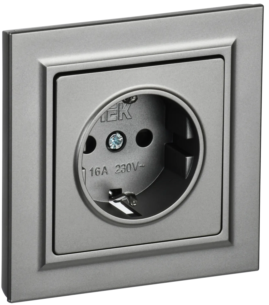 BRITE Розетка 1 пост с заземлением с защитными шторками 16А в сборе РСР14-1-0-БрС сталь IEK IEK (ИЭК) BR-R14-16-K46-F