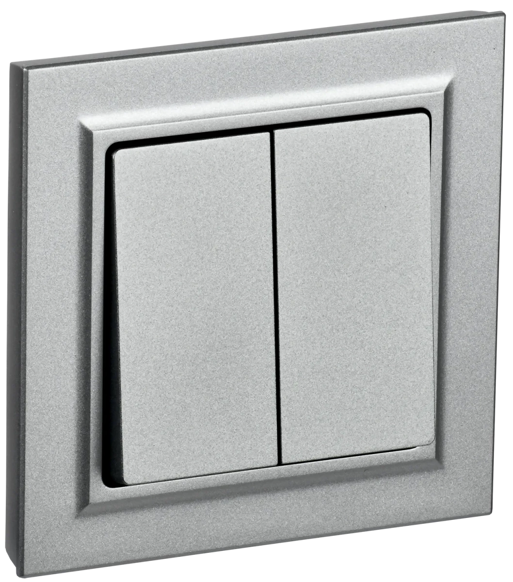 BRITE Выключатель двухклавишный 10А в сборе ВСР10-2-0-БрА алюминий IEK IEK (ИЭК) BR-V20-0-10-K47-F